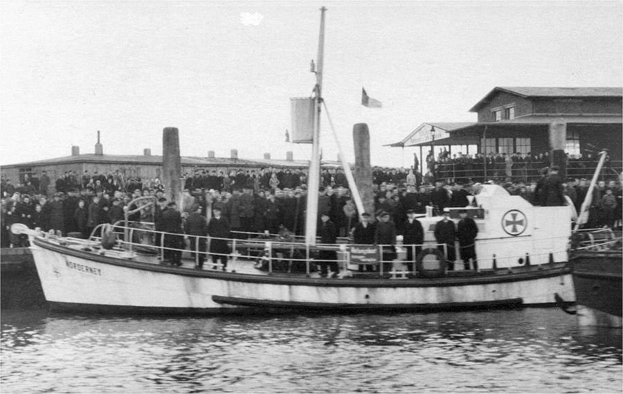 Indienststellung Motorrettungsboot "Norderney"; es entreißt bis zu seiner Ausmusterung im Jahre 1969 bei rund 200 Einsatzfahrten mehr als 300 Menschen dem Tod auf See.