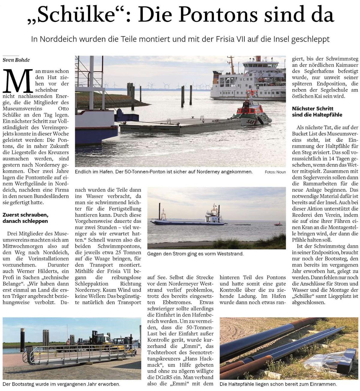 Die Pontons für die Liegestelle der "Otto Schülke" sind eingetroffen.