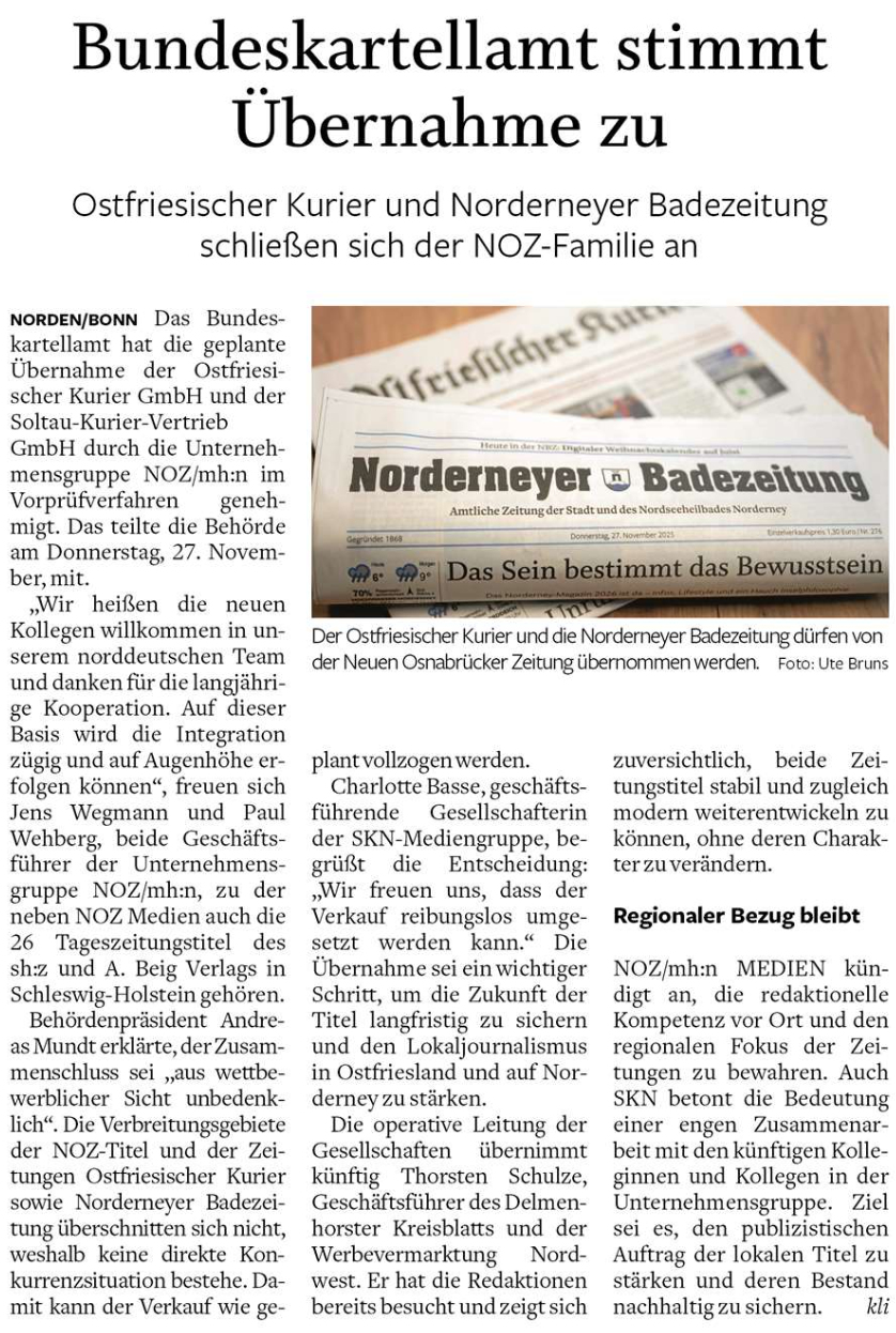 Übernahme der NBZ durch die NOZ-Familie (NBZ 28.11.2025)