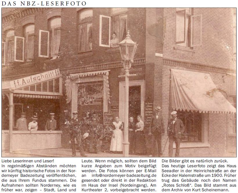 Das heutige Leserfoto zeigt das Haus Seeadler in der Heinrichstraße an der Ecke der Halemstraße um 1900. Früher trug das Gebäude noch den Namen "Rotes Schloß". Das Bild stammt aus dem Archiv von Kurt Scheinemann.