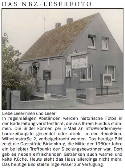 Das heutige Bild zeigt die Gaststätte Birkenkrug, die Mitte der 1960er-Jahre ein beliebter Treffpunkt der Siedlungsbewohner war. Dort gab es neben erfrischenden Getränken auch warme und kalte Küche. Heute steht das Haus allerdings nicht mehr. Das heutige Bild stellte Inge Visser zur Verfügung.