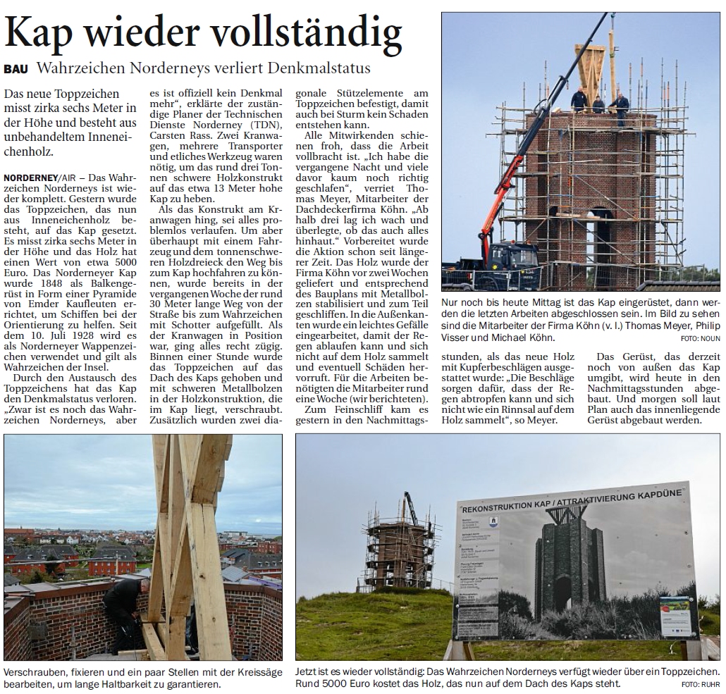 9. Oktober: Mit der vollständigen Wiederherstellung verliert das Kap seinen Denkmalstatus.