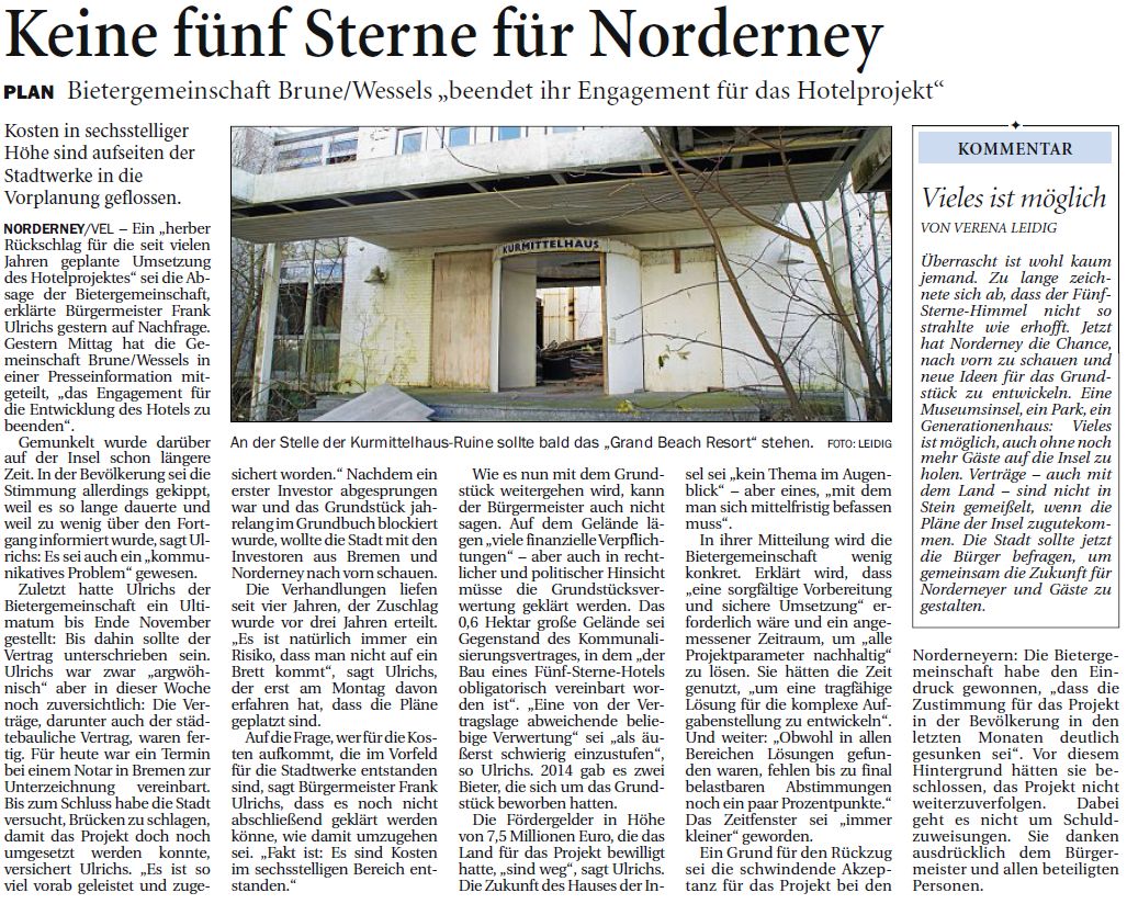 Ende November: Die Bietergemeinschaft Brune/Wessels beendet ihr Engagement für das Hotelprojekt.