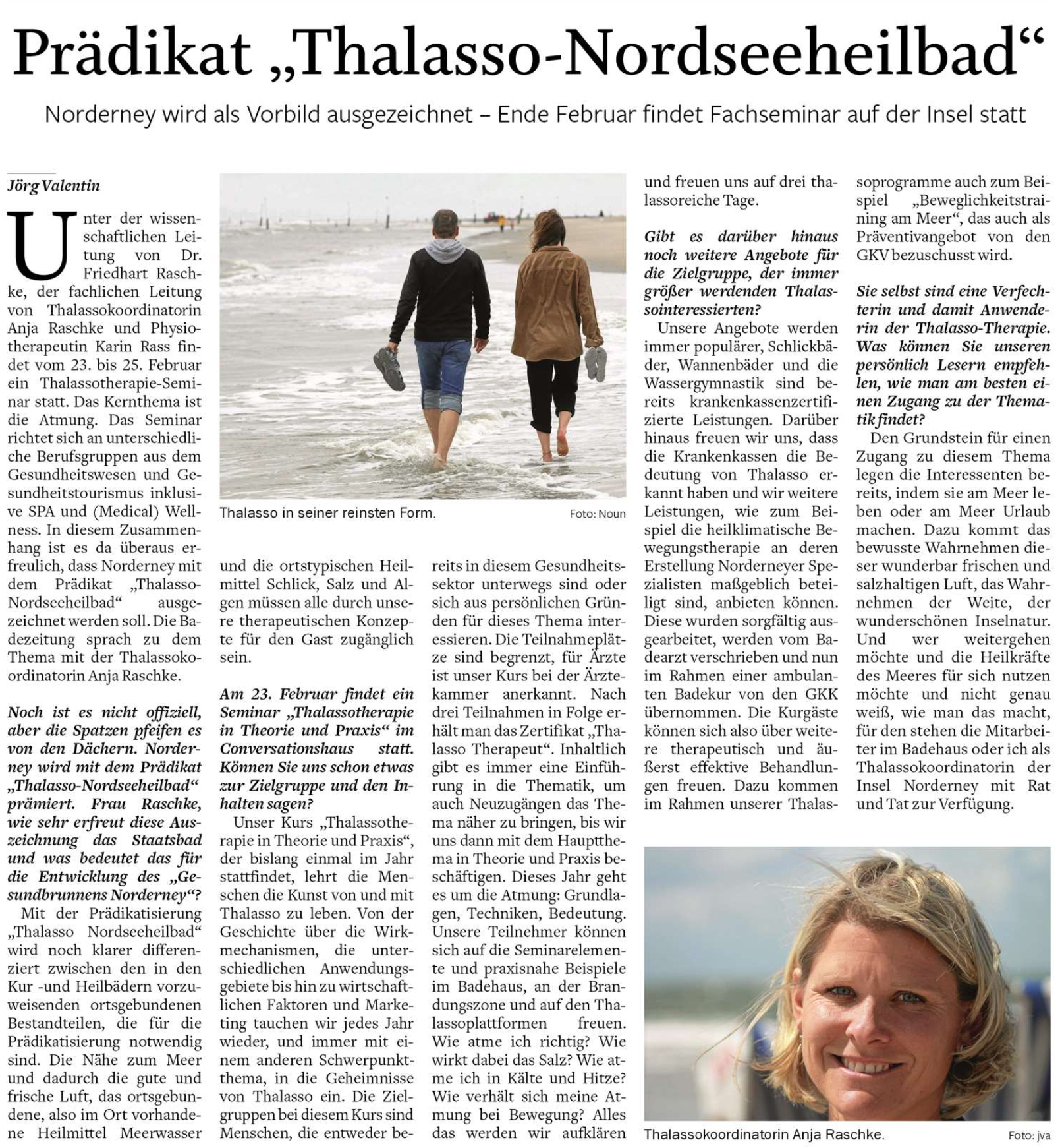 Norderney erhält das "Prädikat Thalasso-Nordseeheilbad".