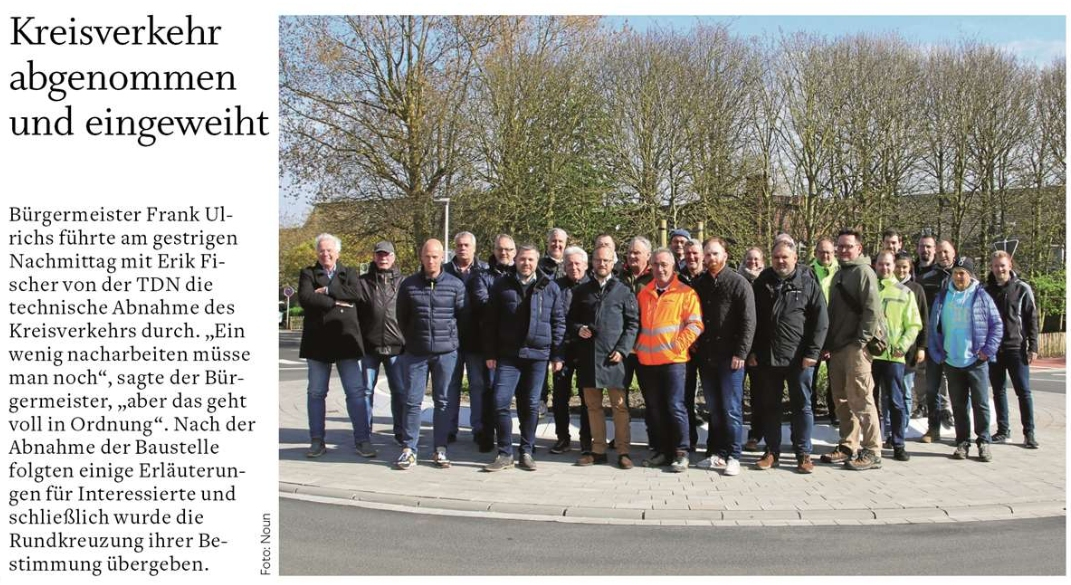 Am 17.04. Abnahme und Einweihung des ersten Kreisverkehrs.