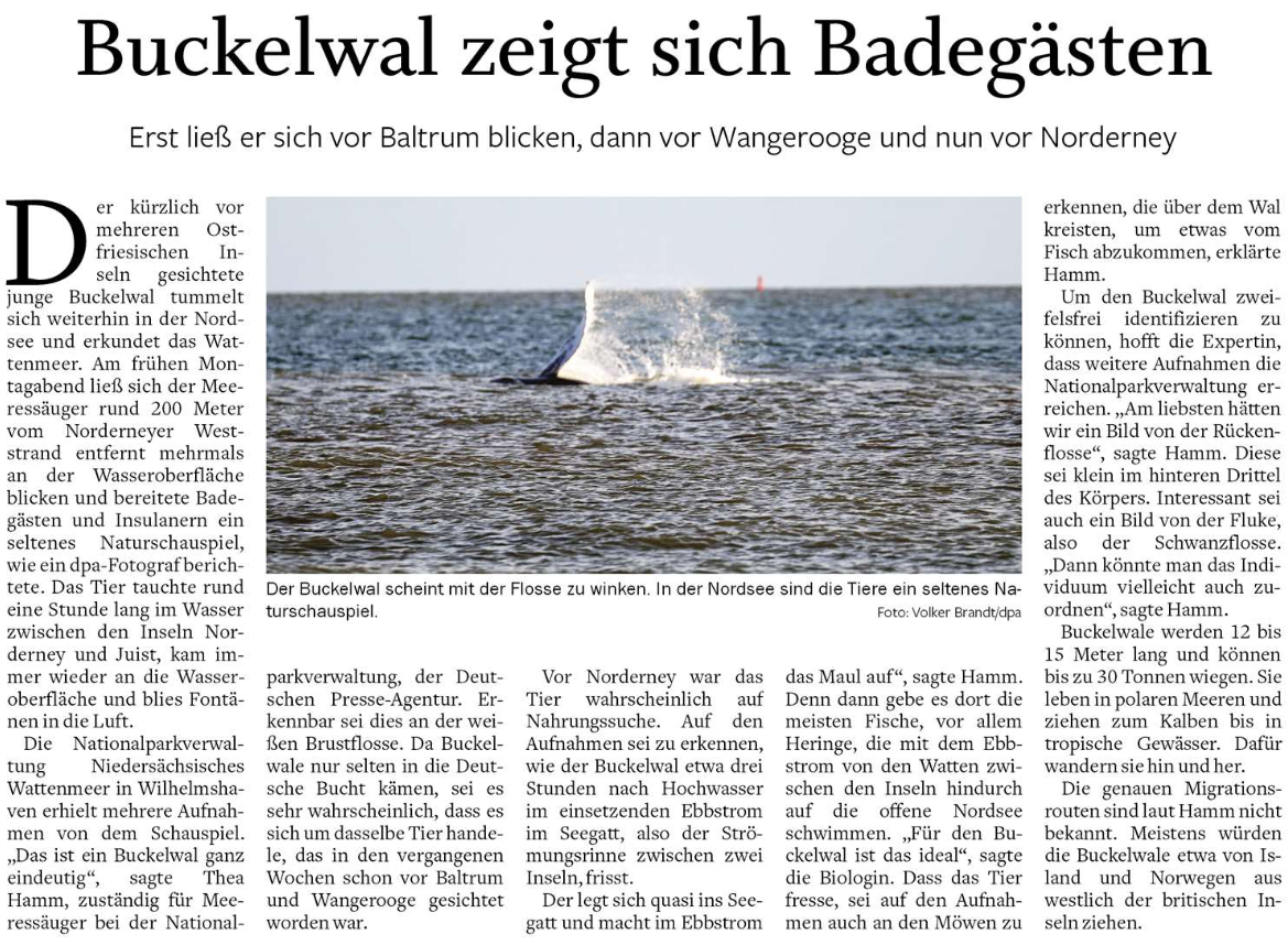Sichtung eines Buckelwales vor Norderney.