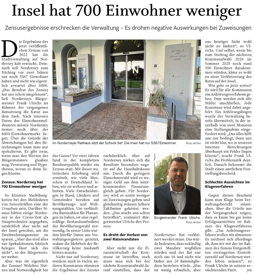 Die Insel hat 700 Einwohner weniger. So das Ergebnis des letzten Zensus von 2022.